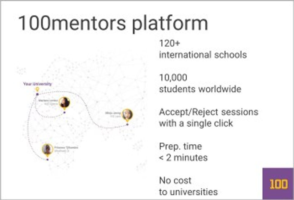 Whether you’re teaching a class, giving a TEDtalk, or hosting a mentor session on a platform, put these tips to use to ensure you’re getting your message across. 100mentors is the platform and network empowering students to connect with mentors on-demand to guide them in their most important academic and career decisions. With 100mentors, schools enable students to open up their circles of influence to include mentors from 300+ universities and 500+ companies across the world. Ready to mentor and empower students? Get started below.