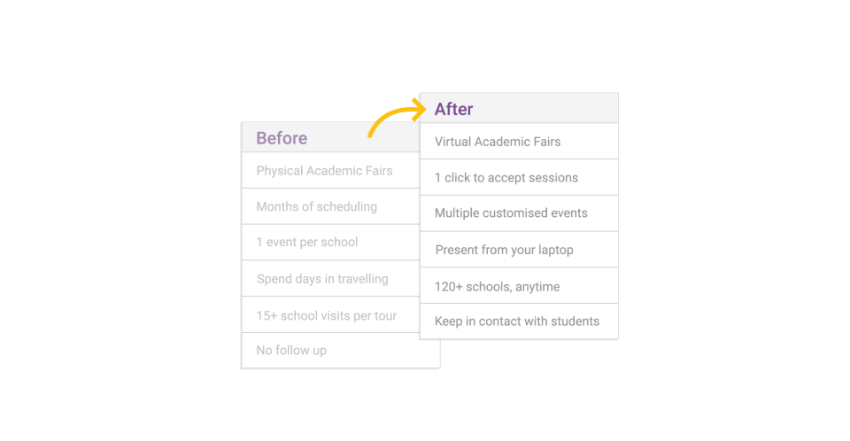 Recruitment managers and officers visit those schools during their yearly roadshows, but they can hardly leverage on those visits with identifying the most qualified students and engage in meaningful conversations with them throughout the academic exploration period.